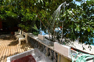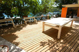 ショップの目の前には144フィートの専用桟橋が設置されショップから高速ボートでダイブサイトまでは40~50分。丸型フロートカタマラン配置型フローティング桟橋のため 干潮/満潮に関係なく容易にボートに乗り移れる配慮が施された自慢の桟橋です。 帰港後もすぐに温水シャワーを浴びられます。