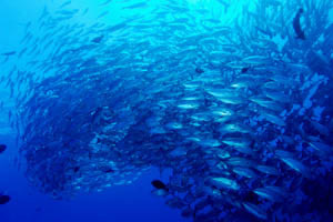 ペリリュー島海域への遠征もあります。怒涛のダイビングサイト・ペリリュー島。上級者のみに許されたスーパーポイント。ロウニンアジの群れ。イレズミフエダイの大産卵。ブルシャーク。カジキ。コロールからダイビングボートで70分。