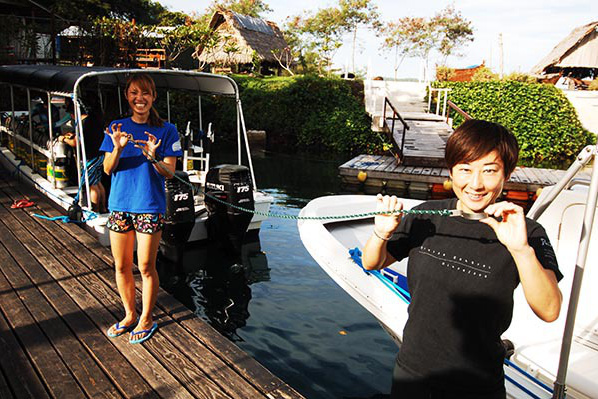 「出港前の桟橋前マクロダイブ 0th(ゼロス)」はボート出港前に1ビーチダイブ。エキジット後に外洋3ボートダイブ可能です。おススメは元オイランハゼの示威行動。巣穴から飛び上がります。毎日開催(繁忙期を除く)70ドルです。